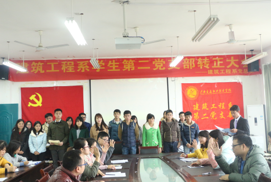 (建筑工程系讯 杨青/文 陈超基/摄)2015年12月08日,建筑工程系学生第二党支部按期召开柏秀燕等20名预备党员转正大会,建筑工程系党总支书记邱文成及建筑工程系第二党支部的党员教师参加了此次会议。