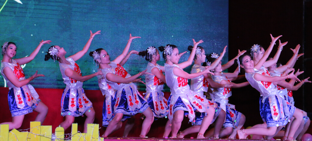 在舞蹈节目《蒙古族筷子舞》中,身着舞服的舞者接连出场,她们体态婀娜,唯美动人,用充满民族特色的裙摆画出一片惊艳。同时,平日里站在讲台上的老师们换上西装,手持话筒走上众人瞩目的舞台,用自己的的歌声表达了新年的祝福。