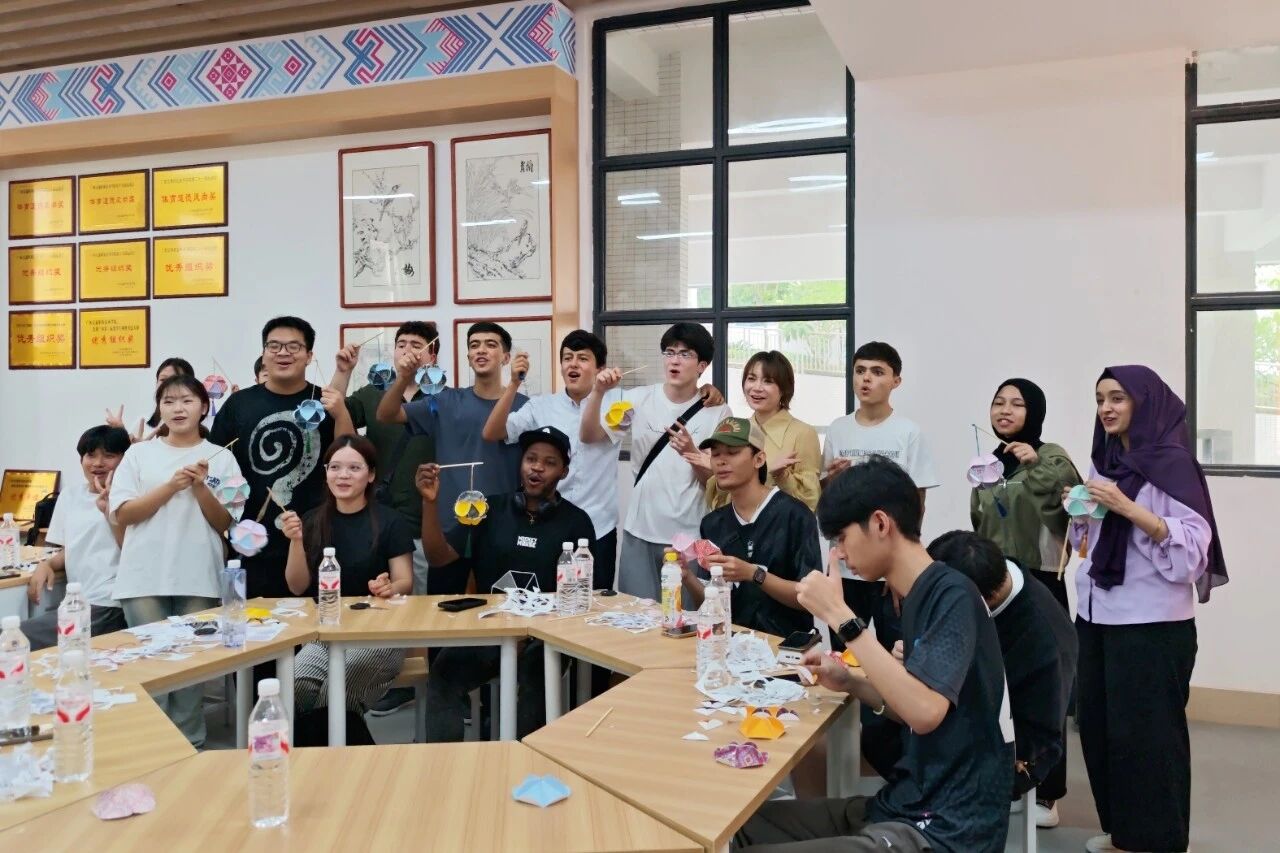 活动尾声,中外学子手持自制的绣球灯笼,用汉语齐声祝愿“中秋快乐”,并合影留念,为此次非遗中秋之旅画上圆满句号。