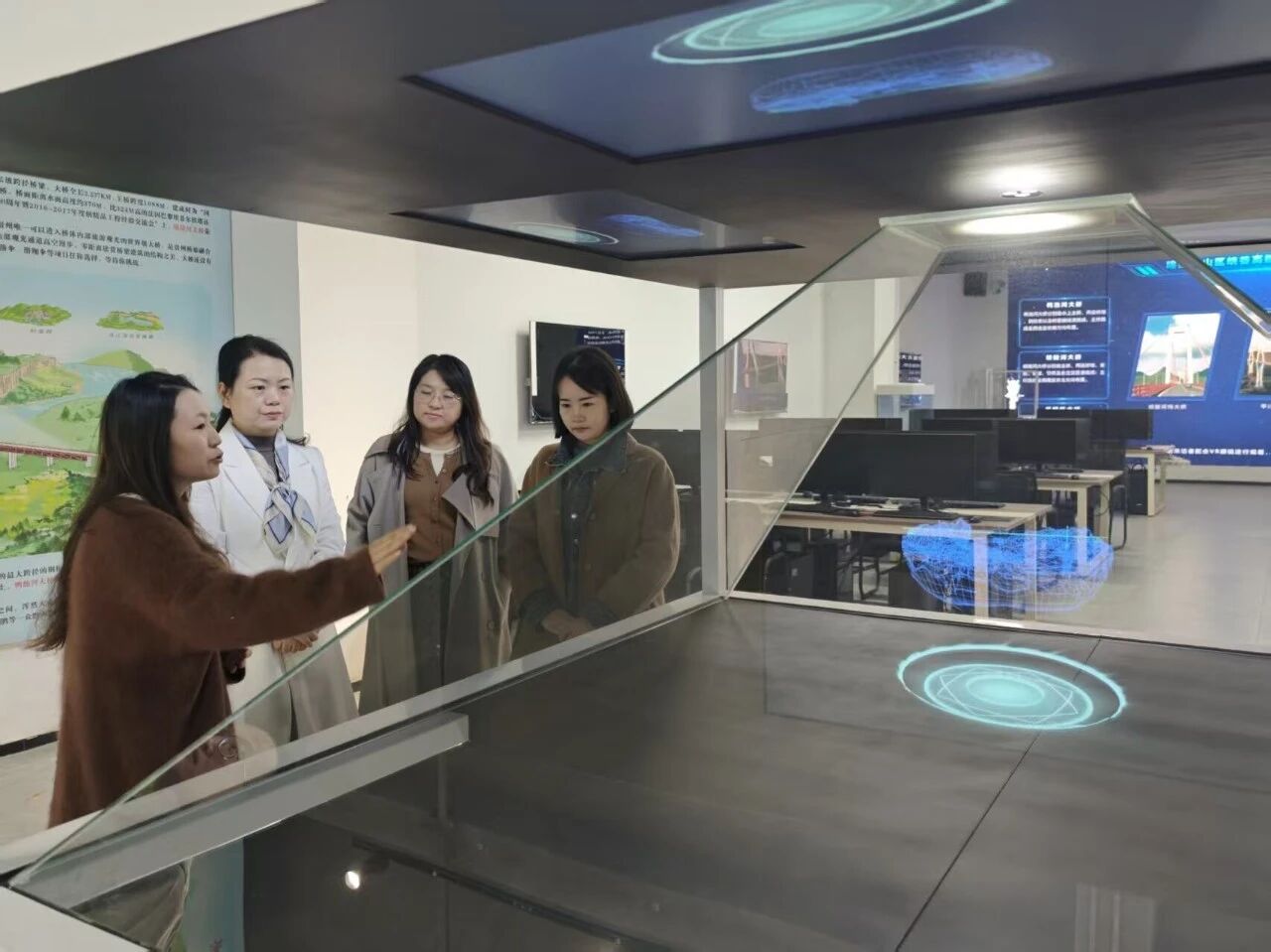 在交旅融合研学服务中心,通过体验虚拟仿真教学设备,团队清晰了解贵州桥旅融合的发展历程:从坝陵河大桥1.0版以桥体观光为主,到平塘大桥2.0版“桥+服务区+景区”的融合模式,再到花江峡谷大桥3.0版“一心六片区”的桥旅、体旅深度融合模式,为我院探索平陆运河沿线交旅融合项目的梯度实施提供了重要参考。