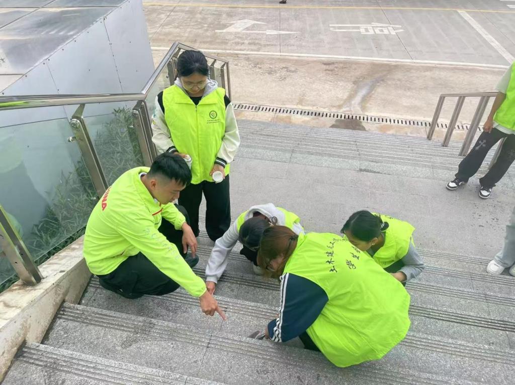学院高度重视此次实践活动,提前制定实施方案。通过实地勘察明确阶梯清洁的范围与重点难点,科学划分责任片区,结合成员特长合理调配力量,确保分工清晰、高效推进。活动前,服务团负责人张筱伟、李昶男老师向成员详细讲解清洁工具使用方法、安全注意事项及保洁标准,为活动顺利开展打牢基础。