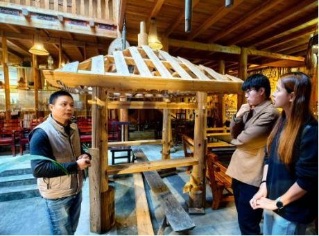 在完成野外数据采集的同时,团队深入当地社区,走访了多家扎根于侗族文化传承的企业,并与数位国家级、省级非遗传承人进行了面对面的交流。团队成员专程参观了在业内享有盛誉的杨氏木艺文化产业有限公司,亲身体验侗族木构从选材到成品的精湛工艺流程。此外,团队重点拜访了杨似玉、杨云东、杨涛等侗族木构建筑营造技艺的代表性传承人。这些老匠人数十年如一日地坚守着古老的技艺,他们的丰富经验与深刻见解,为数字化研究工作注入了不可或缺的人文内涵与历史厚度。双方围绕“如何利用现代科技手段促进非物质文化遗产的创造性转化与创新性发展”这一议题展开了热烈而富有建设性的讨论,共同探索数字化保护成果在文化传承、虚拟研学、创新设计等领域的应用潜力。