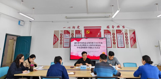 (通识教学部讯 罗秀连文图)3月23日下午,通识教学部党总支在副楼406党员活动室召开2025年度民主生活会暨蓝天立案件以案促改、中央巡视整改专题民主生活会。学校党委委员、副校长戴晓云同志,党委组织部副部长、党委统战部副部长卢东同志到会指导。党总支书记梁科同志主持会议,部门领导班子全体成员参加会议。