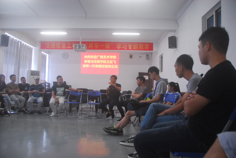 (交通信息工程系 讯 李燕妮/文)10月11日上午,广西艺术学院影视与传媒学院广播电视编导系主任王廷飞带学生到我院信息工程系与数字媒体(多媒体)专业师生进行专业交流。系党总支杨顺韬书记、系罗宜春副主任及部分1...