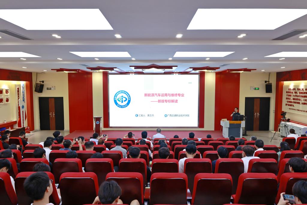 与此同时,新能源汽车技术专业(高职)和新能源汽车运用与维修专业(中职)新版教学标准宣贯会也在分会场举行,来自新能源汽车技术专业(高职)新版教学标准研制组副组长刘学军教授和新能源汽车运用与维修专业(中职)新版教学标准研制组骨干教师黄志杰老师面向全区24所中高职院校进行了标准解读。此次宣贯重点围绕新标准研制历程、体例框架、新标准变化、具体标准内容等,全面解读了新标准的研制背景、价值意义、主要特点和落实路径。