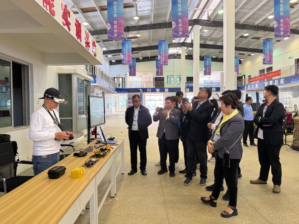 培训期间,泰国学员系统学习了新能源汽车基础知识及前沿技术,并前往五菱、理想等新能源龙头车企开展实践培训,深入了解当前中国新能源汽车技术标准与市场动向。学员们还参观了学校的广西低空交通创新应用中心、路桥教学工厂、轨道实训基地及物流实训基地,考察了广西北投低空经济有限公司,看到了中国低空技术行业的飞速发展。