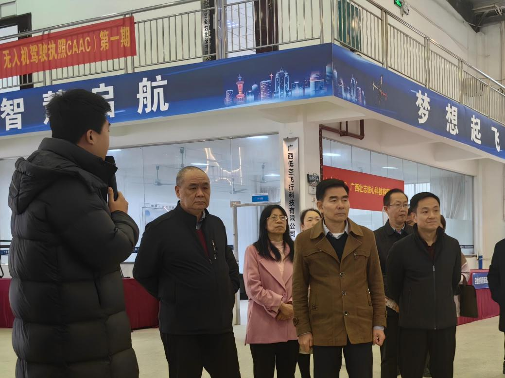 (土木建筑工程学院 讯 黎哲/文)2月27日上午,南宁市政协主席杨维超率政协委员一行莅临广西低空交通创新应用中心(以下简称“中心”)调研指导,深入了解中心建设成果、技能培训体系及低空经济应用场景实践。学校党委书记陈湘如、学校副校长邱实,南宁市兴宁区委书记高鑫等陪同调研。